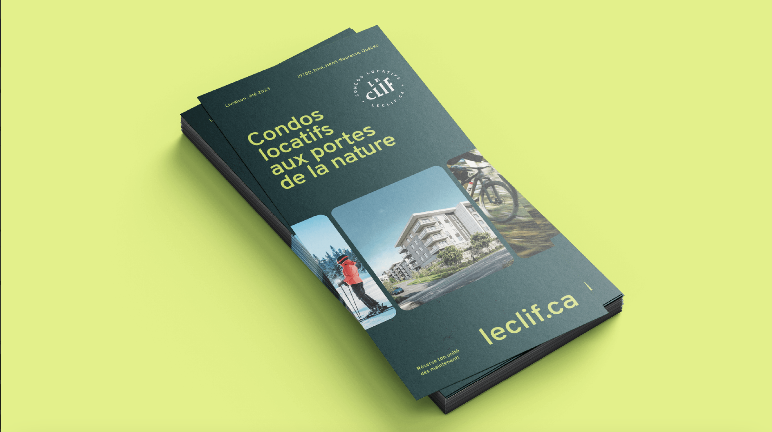 Le Clif est un projet de 151 condos locatifs haut de gamme à Charlesbourg, alliant confort moderne et proximité avec la nature. Inspiré par l’architecture montagnarde, il offre des unités spacieuses, des aires communes complètes (piscine, gym, lounge, terrasse, golf virtuel) et un accès facile aux stations de ski, sentiers et services. Idéal pour les amateurs de plein air cherchant un cadre de vie élégant et pratique.