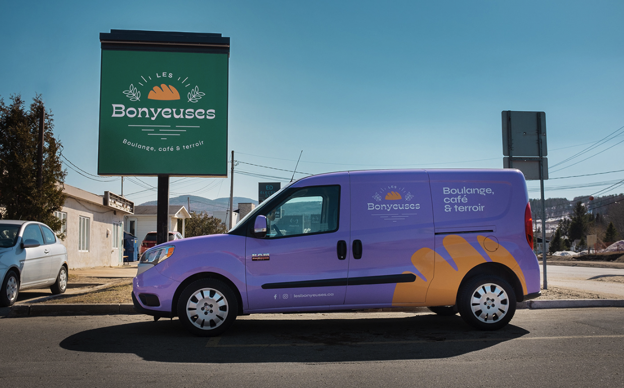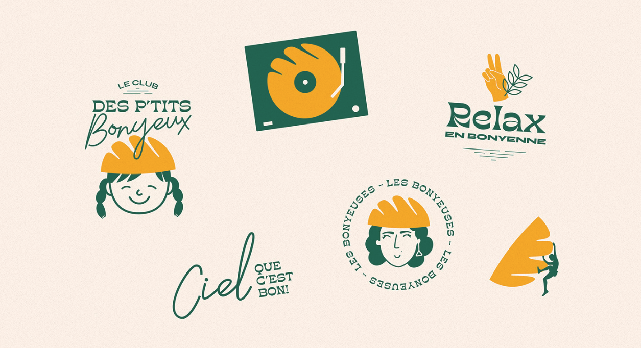 Réalisation d’un branding coloré et rayonnant pour Les Bonyeuses, un café-boulangerie situé dans la province de Québec, au Canada.