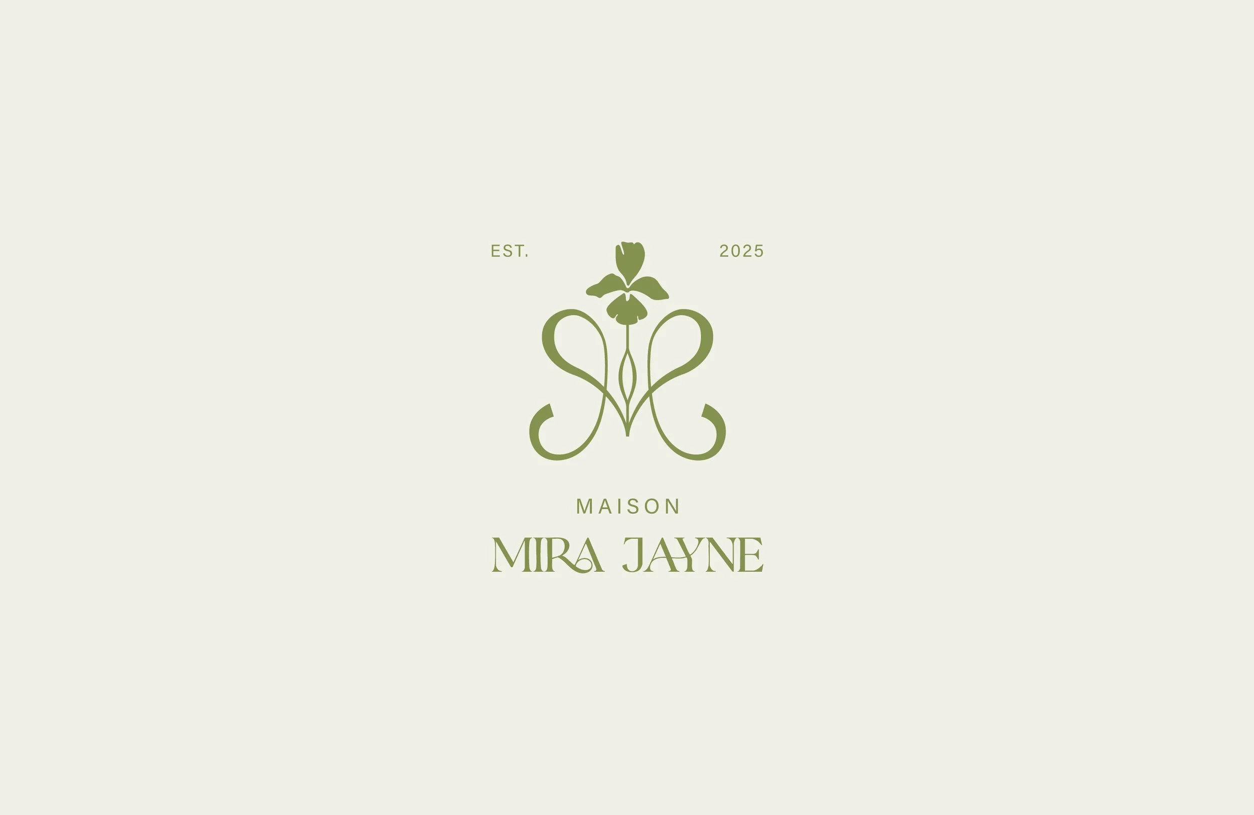 L’identité visuelle de la Maison Mira Jayne se construit autour de la violette, symbole fort et chargé d’émotion. Fleur de mémoire et de transmission, elle rend hommage à sa grand-mère, source d’inspiration et de passion pour la couture. Le logo, dessiné avec finesse et délicatesse, reflète à la fois la minutie, la patience et le savoir-faire artisanal qui caractérisent chacune de ses créations.